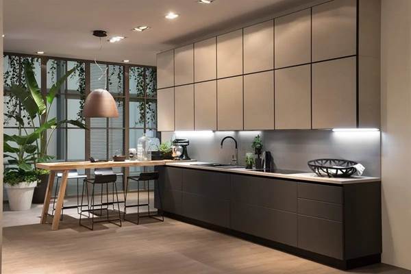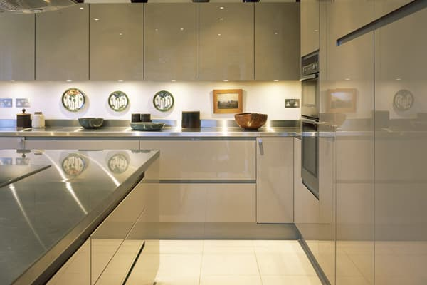 - طراحی و ساخت کابینت آشپزخانه مدرن برای ایجاد سبک مینیمال و افزایش بازتاب نور در محیطهای کوچک